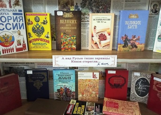 Издания «Дмитрий Донской» Юрия Лощица, «Дмитрий Донской» Ольги Плотниковой, «История России. Панорама нужных знаний» Юлии Школьник, «История России» Игоря Гусева и Дмитрия Кошевара, представленные в разделе «К нему не притронутся бури, / Его не коснутся печали» (К. Бальмонт) знакомят со страницами жизни Д.И Донского, родившегося в 1350 году и ставшего князем в девятилетнем возрасте. Находясь на вершине власти, молодой князь Дмитрий показал себя умелым и энергичным правителем, много сделав для становления государства: расширил границы Московского княжества, укрепил союз с Великим Новгородом, завершил противостояние Москвы и Твери, способствовал укреплению столицы. В 1367 году при нём был построен первый белокаменный Кремль, ставший символом могущества и независимости Москвы.