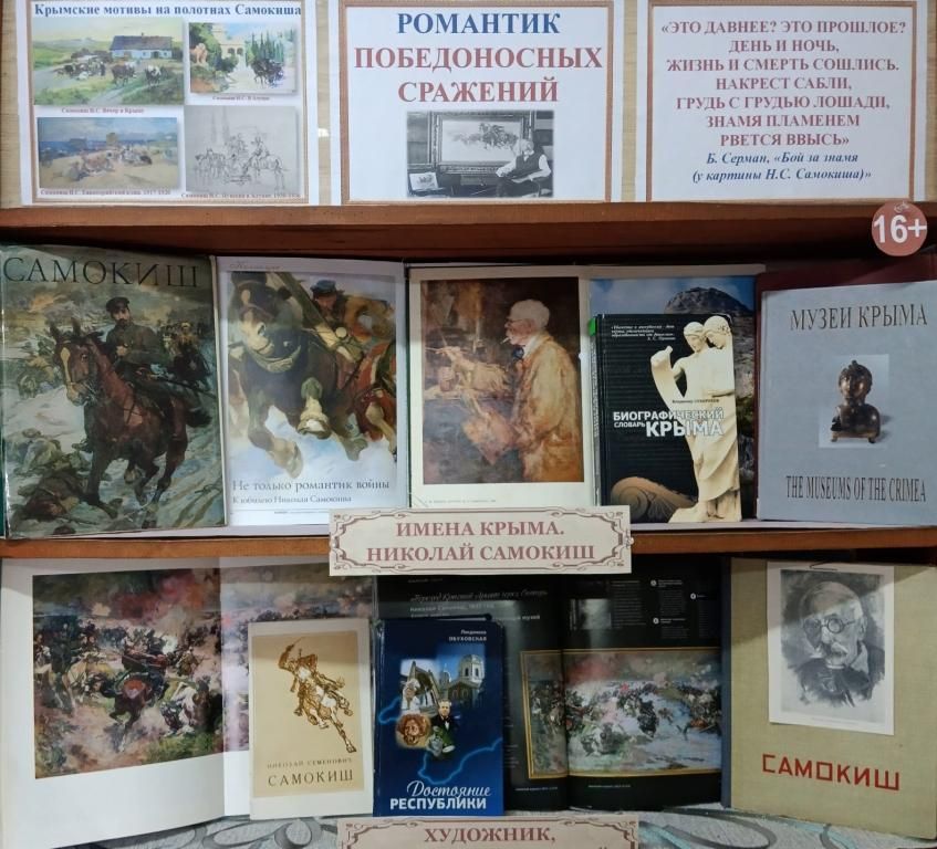 Литература, представленная в разделах «Имена Крыма. Николай Самокиш» и «Художник, рисующий правду», посвящена жизненному и творческому пути выдающегося живописца, графика, педагога, чье имя неразрывно связано с Крымом. Вниманию читателей представлены краеведческие издания «Николай Семенович Самокиш» А. Полканова, «Достояние Республики» Л. Обуховской, «Биографический словарь Крыма» В. Сухорукова, «Симферополь: Улицы рассказывают» В. Широкова и О. Широкова, художественные альбомы с репродукциями картин художника-юбиляра.