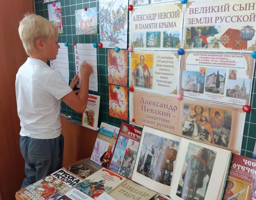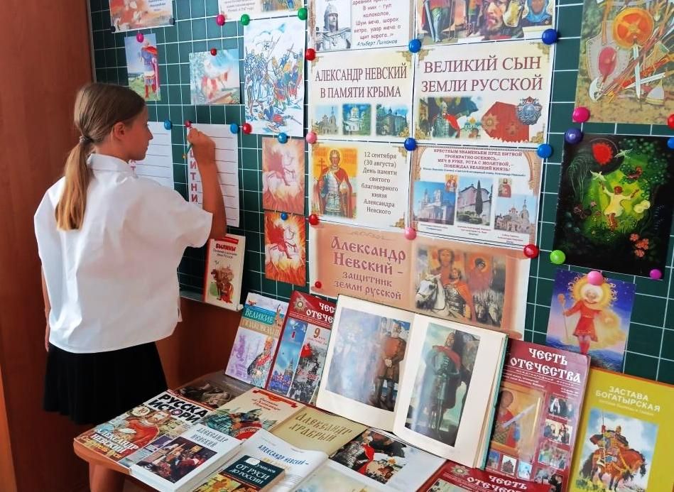 В преддверии памятной даты, в рамках Года Защитника Отечества и патриотического проекта «В книжной памяти – героика Победы», симферопольская библиотека-филиал №4 им. М.М. Коцюбинского организовала для учащихся столичной гимназии №9 литературно-патриотическую программу «Символ ратного подвига – Александр Невский».
