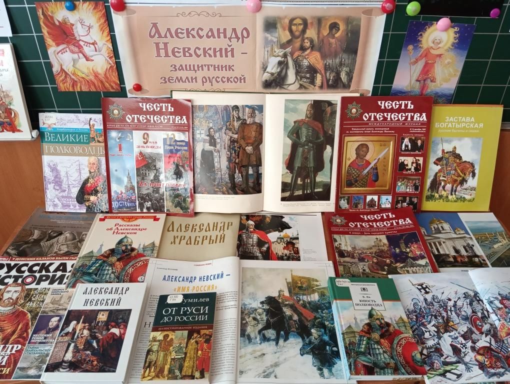 Информационным сопровождением мероприятия стала книжная выставка «Александр Невский – Защитник земли русской», центральное место на которой заняли репродукции картин В.А. Серова и П.Д. Корина, издания «Рассказы об Александре Невском» О.Н. Тихомирова, «Святой благословенный князь Александр Невский» А.М. Воловика, «Сто великих битв Средневековой Руси» М.Б. Елисеева, энциклопедия «Полководцы России» Ю.К. Школьник, статьи из журналов «Родина», «Честь Отечества», «Свой» и др.
